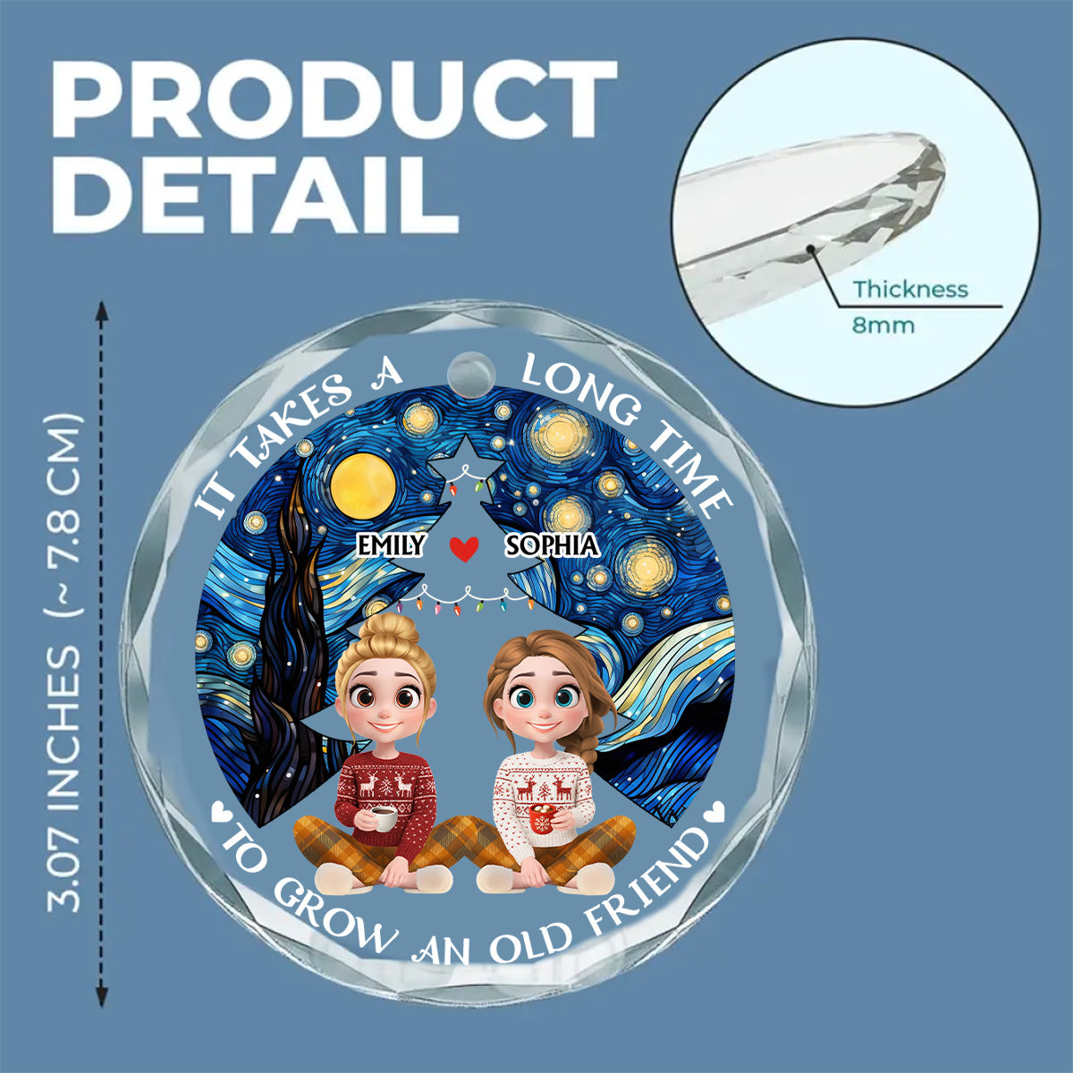 New Year Old Bestie - Personalized Custom Glass Ornament