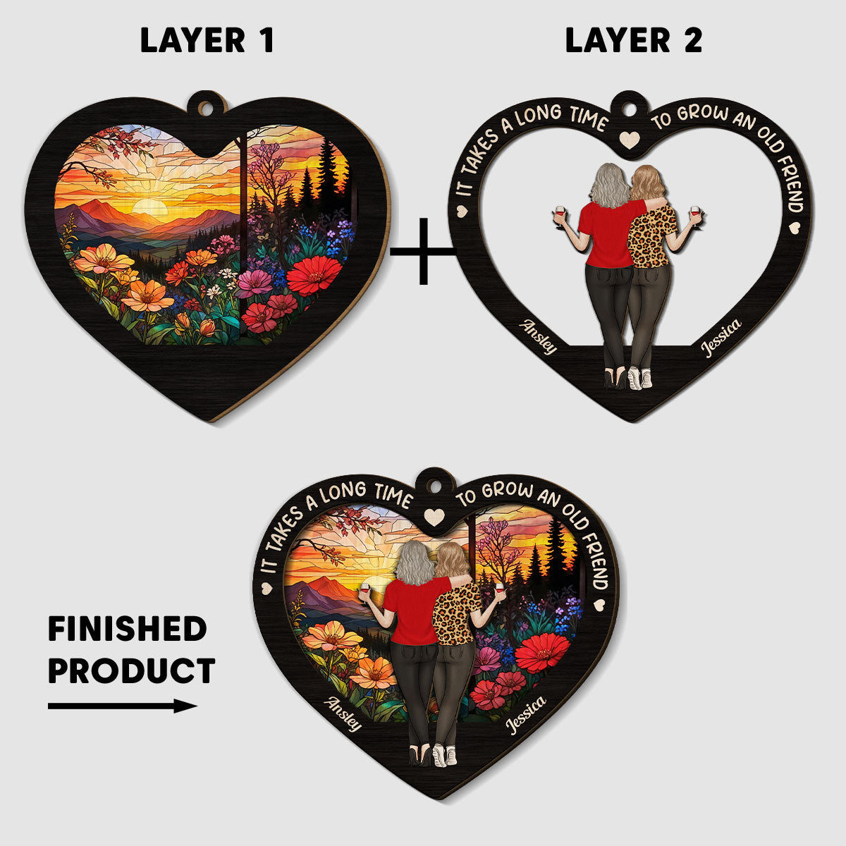 Old Friends Take Time To Grow - Personalized Custom 2-Layered Wood Car Ornament