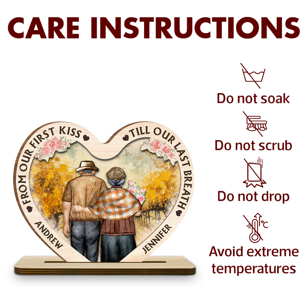 Our First Kiss - Personalized Custom 2-Layer Wood Plaque With Flat Base