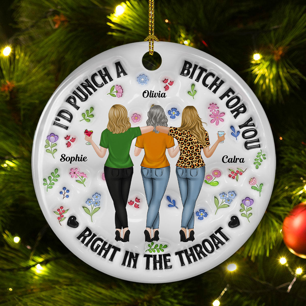 Punch Bitch Besties - Personalized Custom 3D Inflated Effect Ceramic Ornament