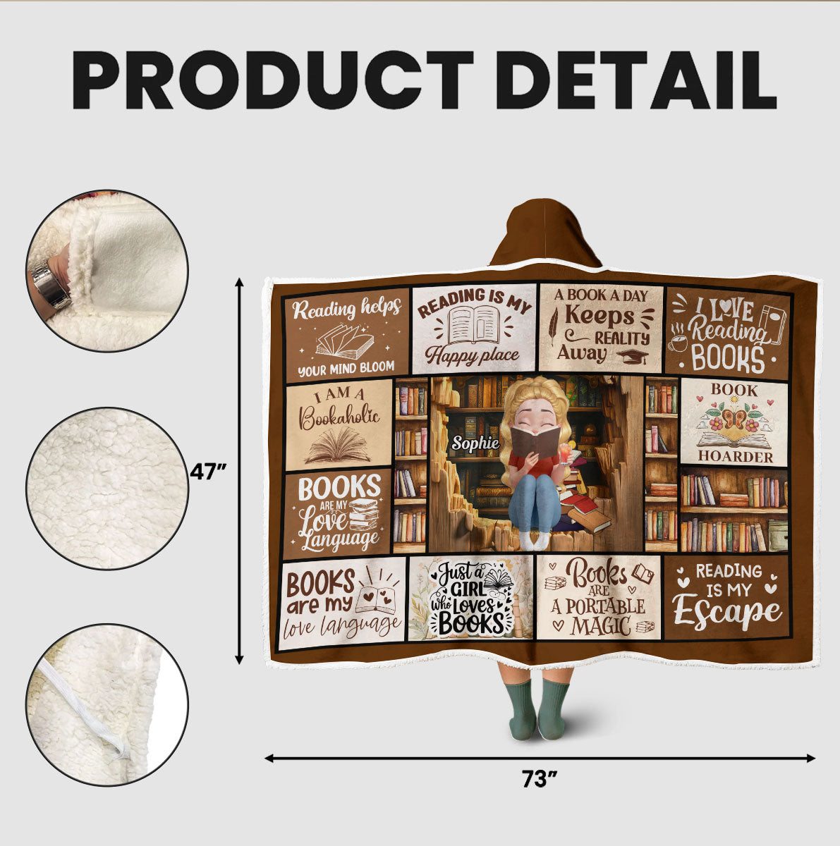 Reading Is My Happy Place - Personalized Custom Hooded Blanket