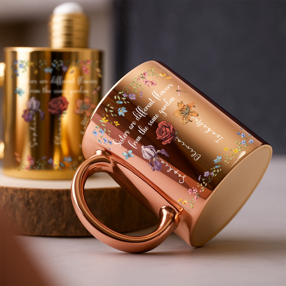 Sisters Are Different Flowers From The Same Garden - Personalized Custom Metallic Mug
