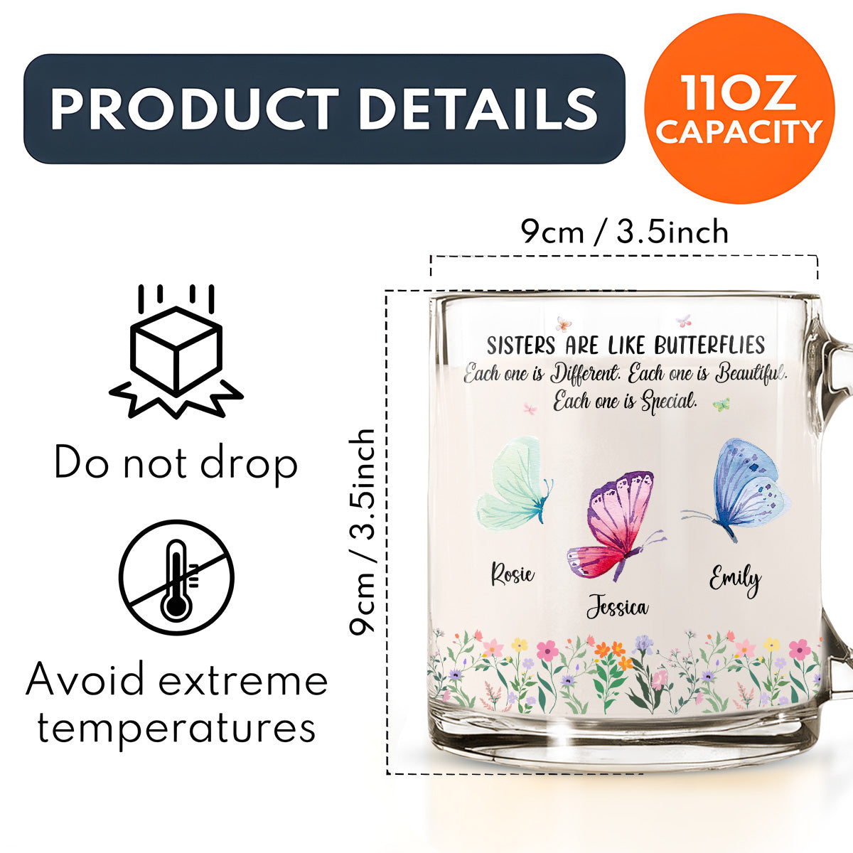 Sisters Flutter Through Life Beautifully - Personalized Custom Glass Mug