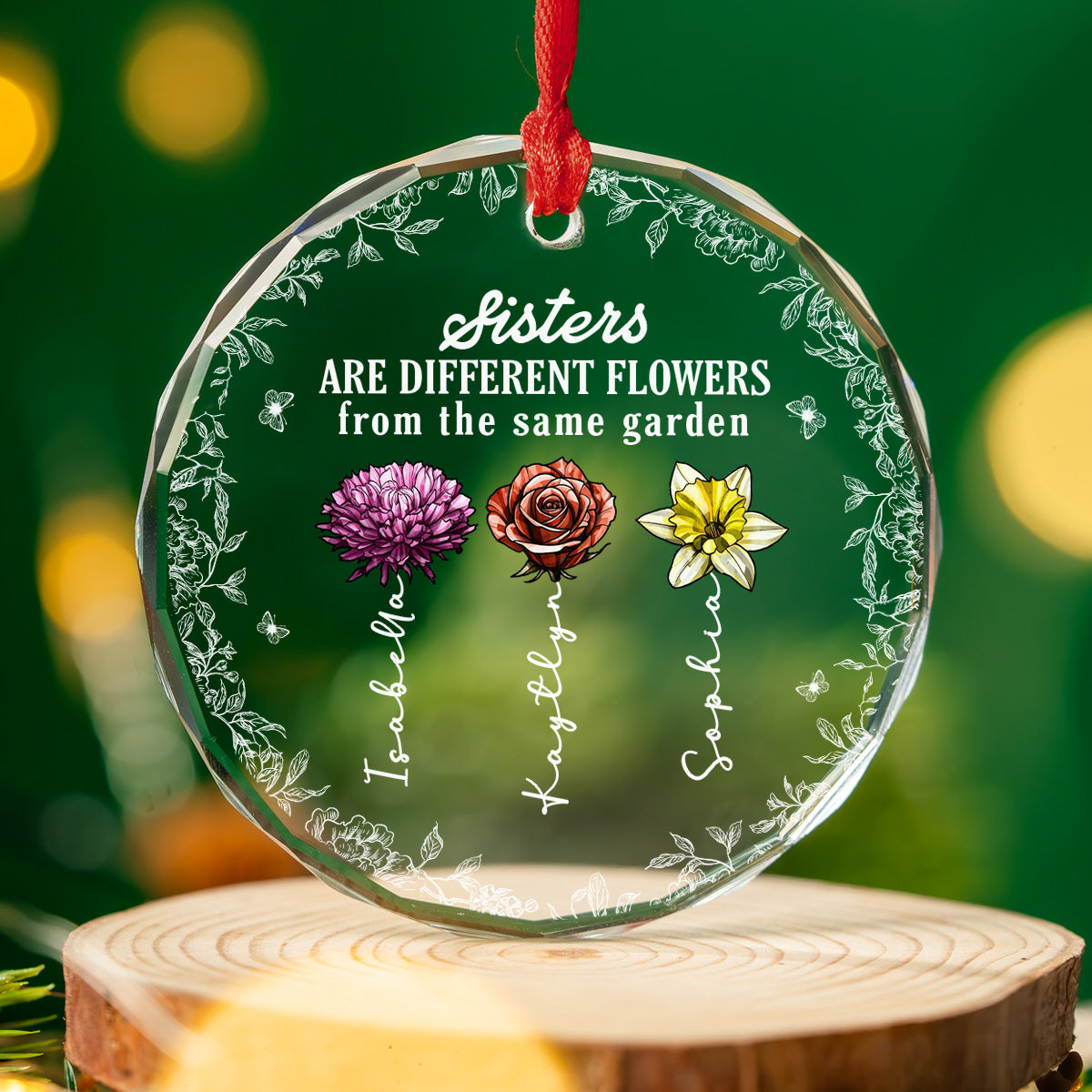 Sisters Grow Stronger Through Love - Personalized Custom Glass Ornament