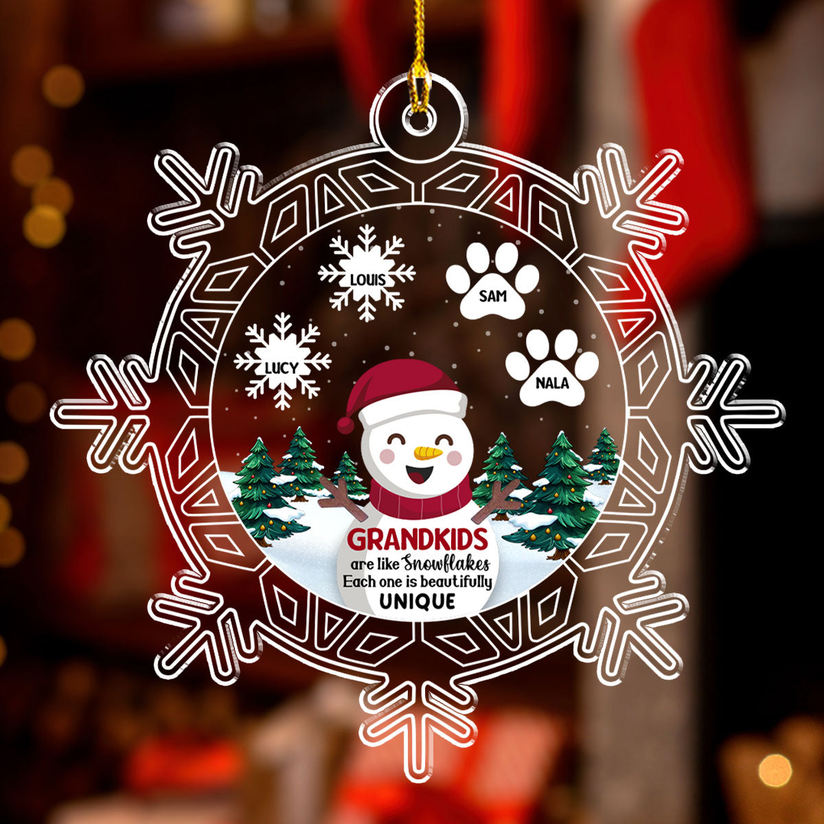 Snowman Grandma And Grandkids - Personalized Custom Acrylic Ornament