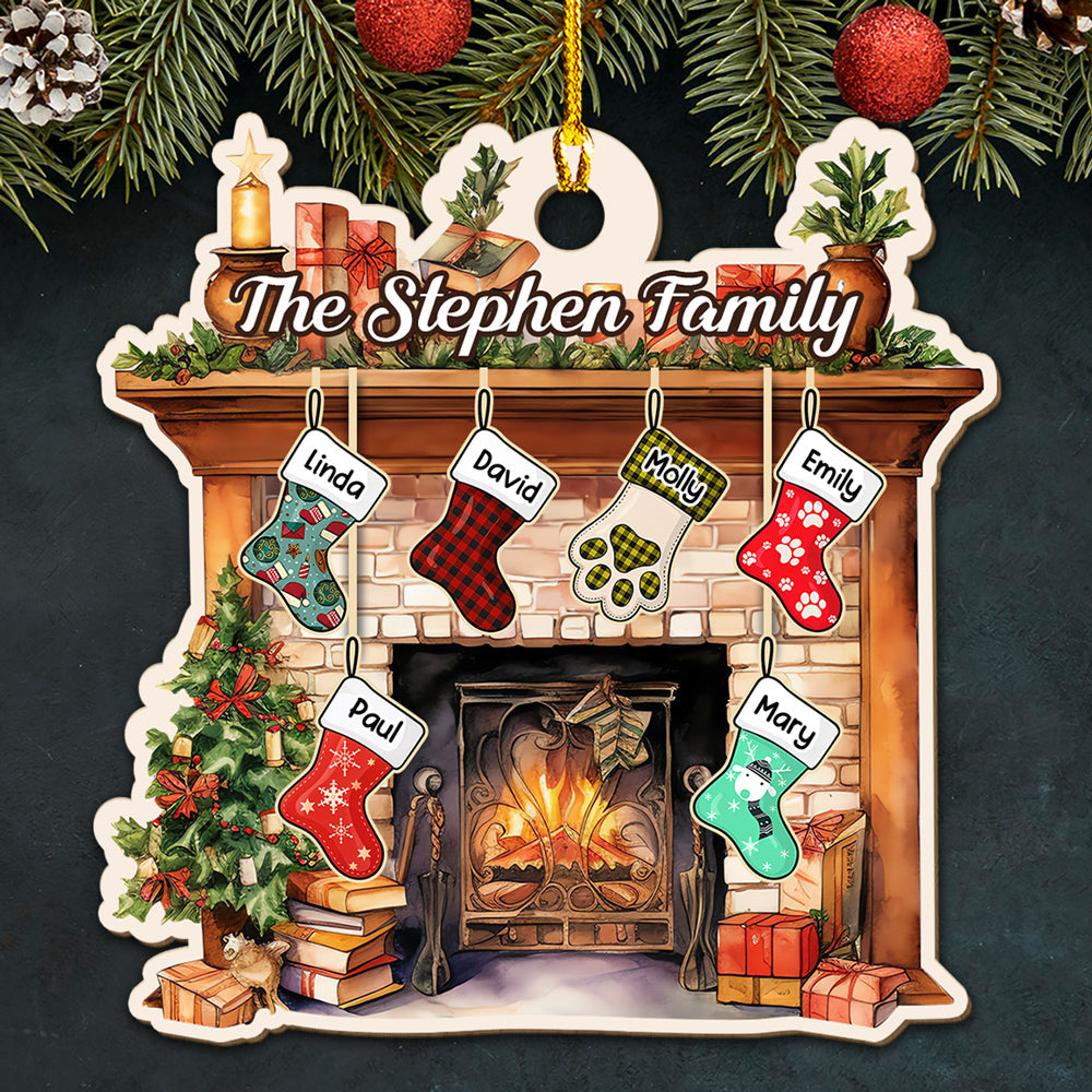 Stocking Christmas Family - Personalized Custom Wood Ornament