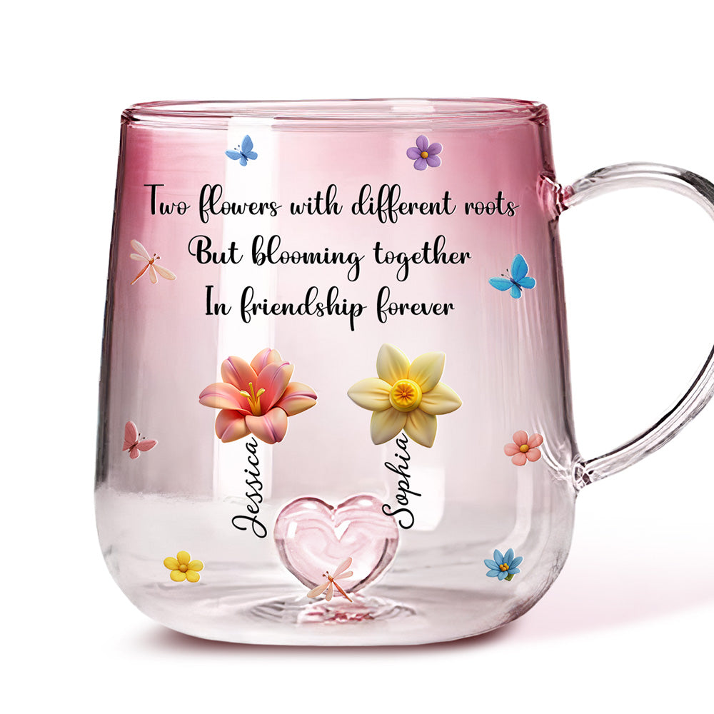 Strong Roots Endless Friendship Blossoms - Personalized Custom Pink Gradient Glass Mug