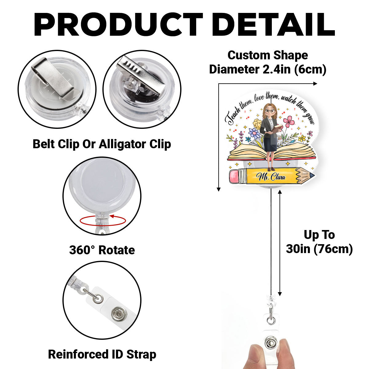 Teach Them Watch Them Grow - Personalized Custom Acrylic Badge Reel