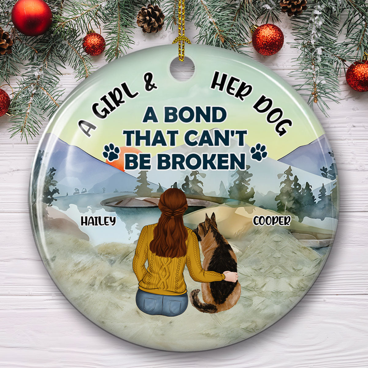 The Unbreakable Bond Between A Girl And Her Dog - Personalized Custom Ceramic Ornament
