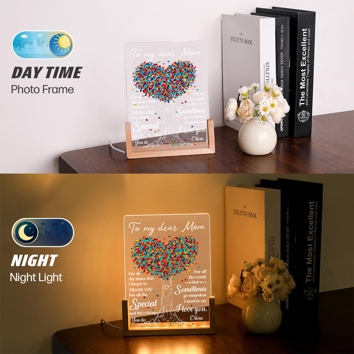 Add a touch of magic to any bedroom with our Plaque With Walnut Base. A Perfect Gift for any special occasion. Add some charm and comfort to your bedtime routine now!