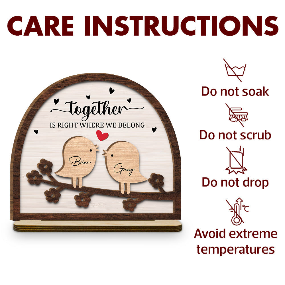Together Is Right Where We Belong - Personalized Custom 2-Layer Wood Plaque With Flat Base