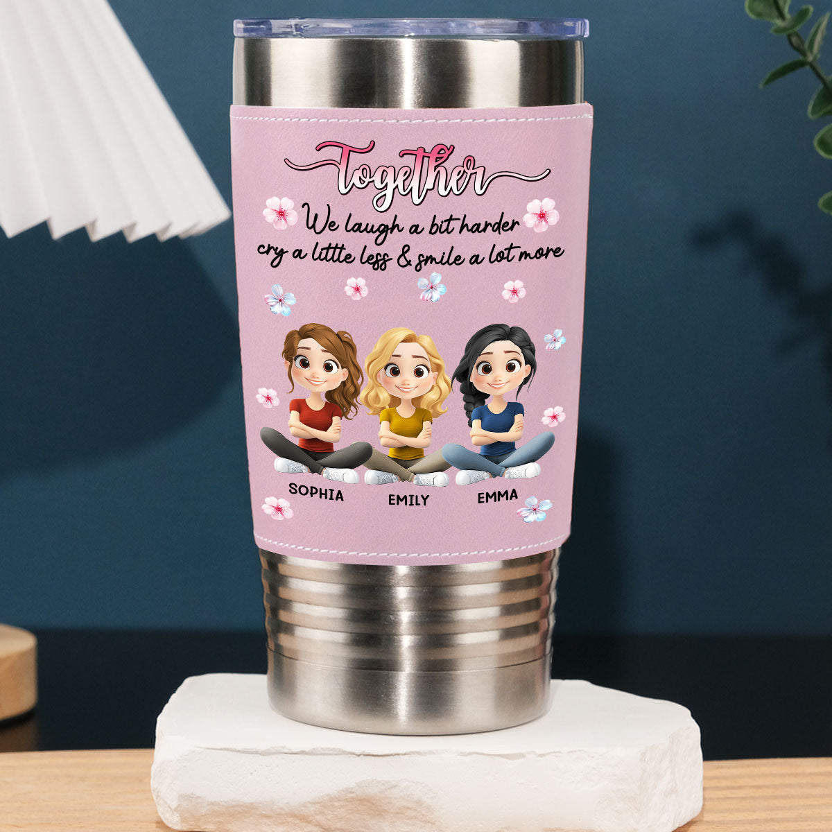 Together We Laugh - Personalized Custom Pink Leather Tumbler