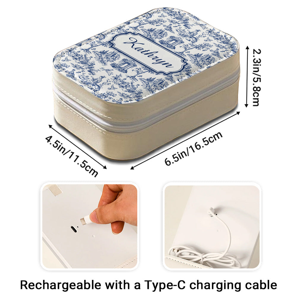 Vintage Toile - Personalized Custom Jewelry Box With LED Mirror