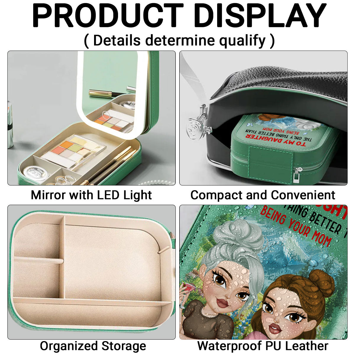 A heartfelt and elegant gift. this personalized jewelry box with an LED mirror is perfect for daughters to cherish their bond with mom. Featuring customizable names and messages. it offers both sentimental value and practical use. Ideal for Mother's Day. birthdays. or any special occasion.
