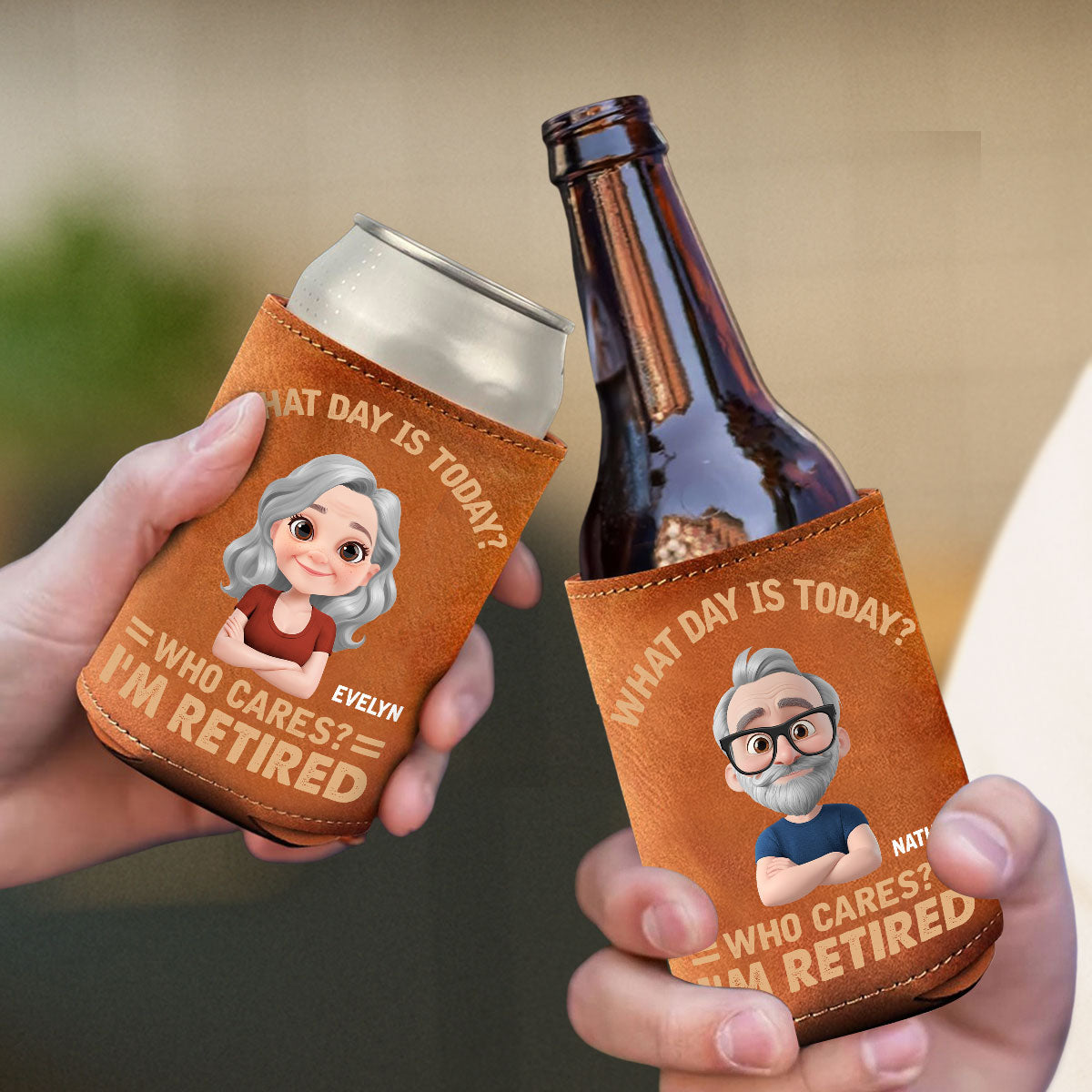 What Day Is Today - Personalized Custom Leather Can Cooler Holder