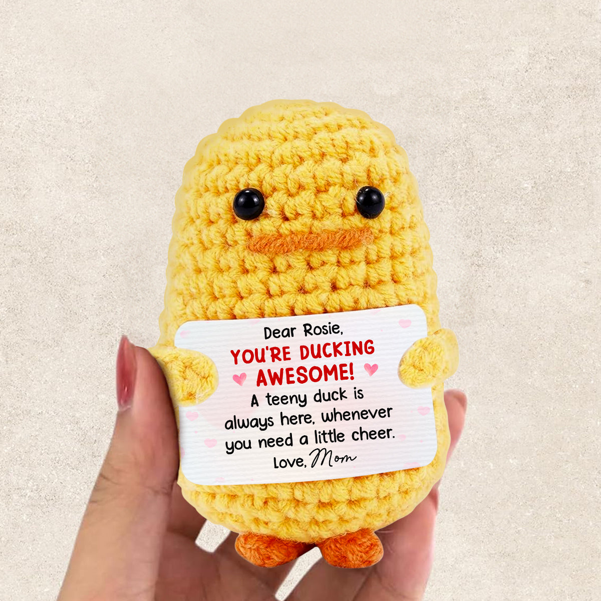 - 100% Handmade Crocheted Positive Duck: Expert artisans lovingly craft each duck crochet doll. ensuring a unique and inspiring piece.