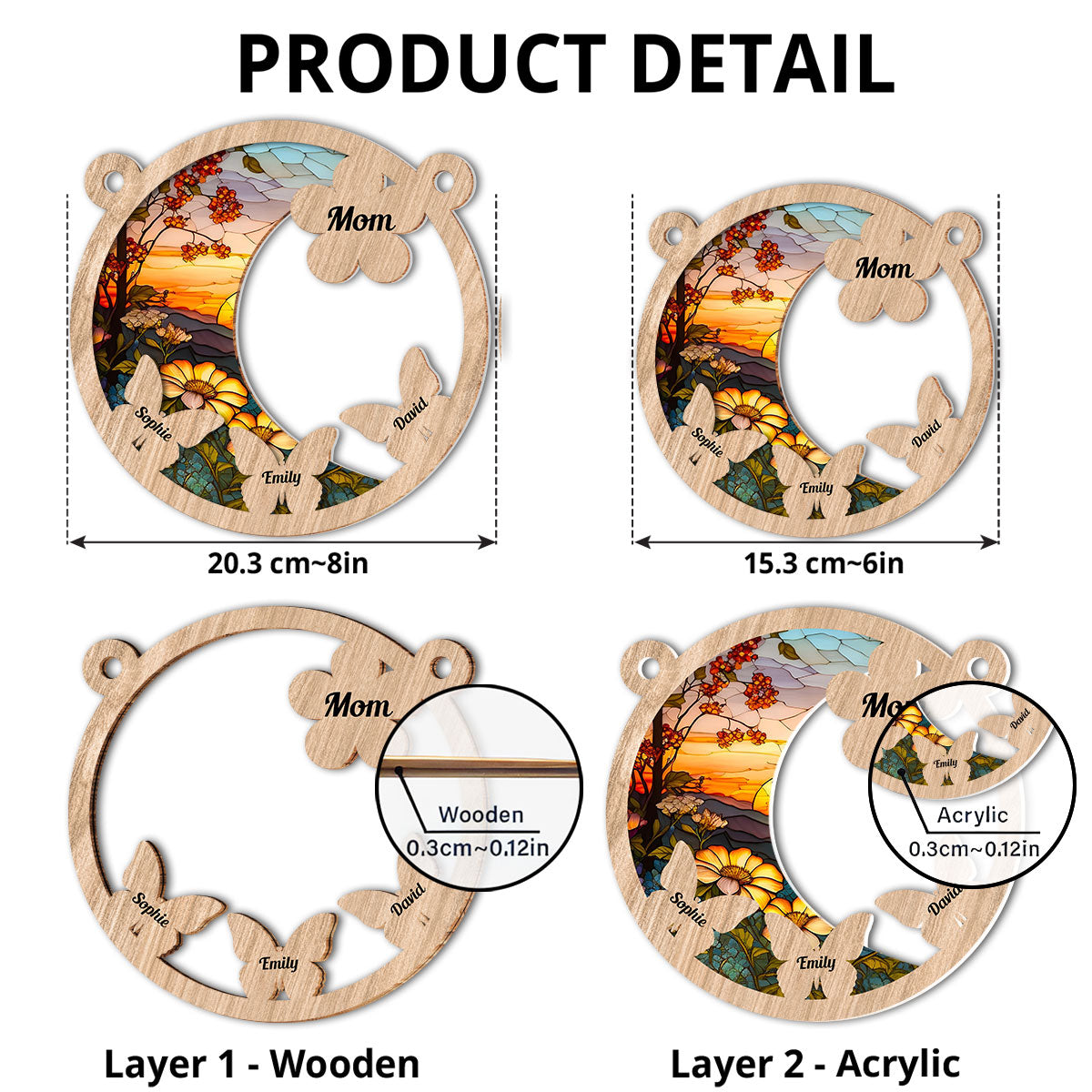 - The front of this suncatcher is made from premium natural wood and mounted on acrylic plexiglass.