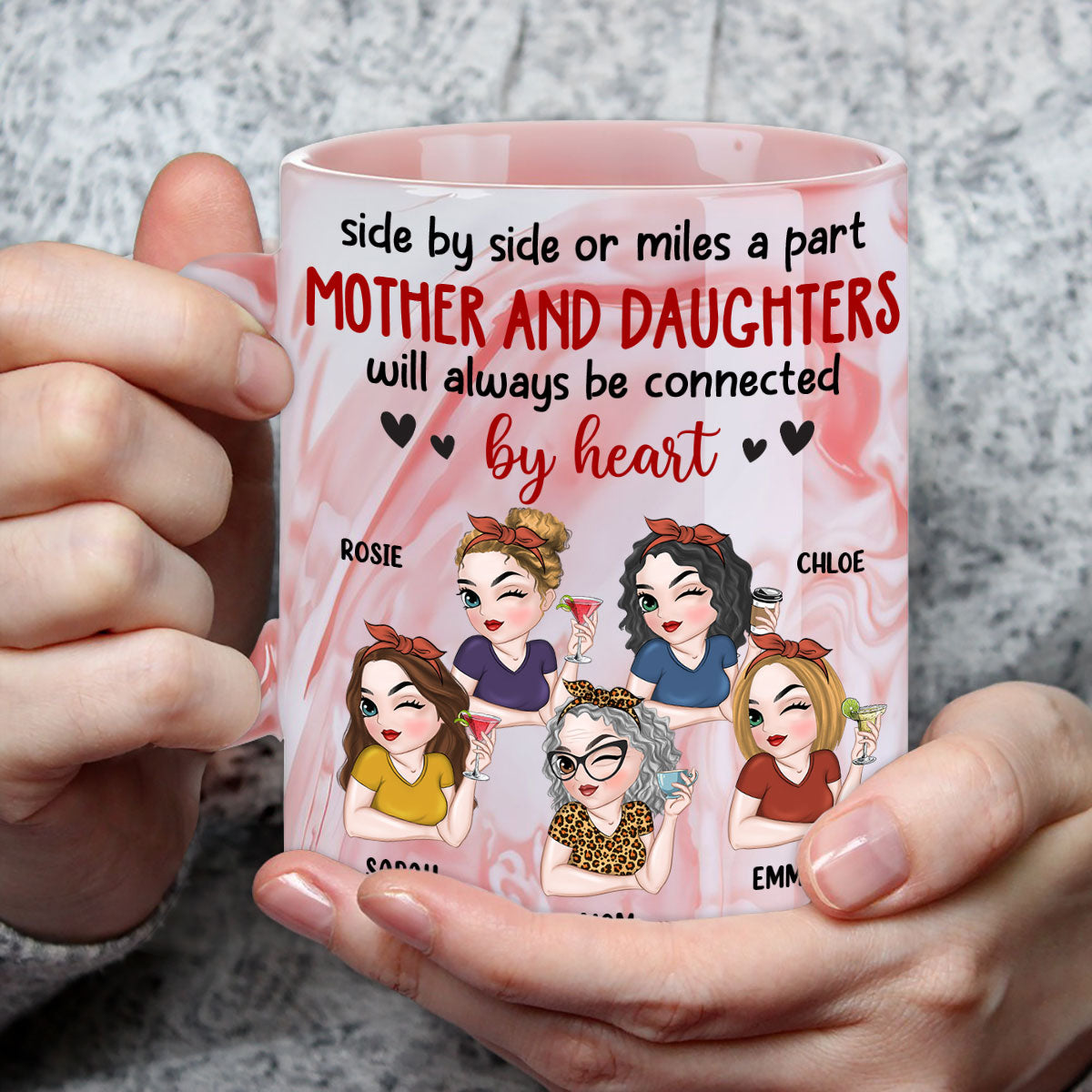 Will Always Be Connected By Heart - Personalized Custom Pink Marble Mug