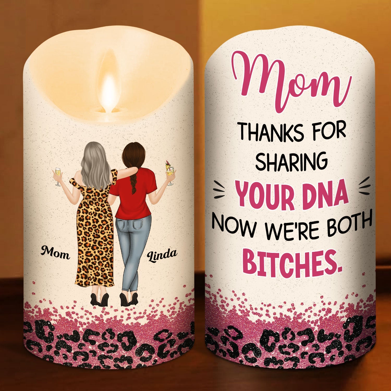Illuminate the bond between mother and daughter with our LED Candle for Moms. The warm glow and flickering flame will add a cozy ambiance to any room. while the delicate floral scent will transport you to a serene garden. A perfect gift for your mom. this candle represents the everlasting love and connection between a mother and her daughter.